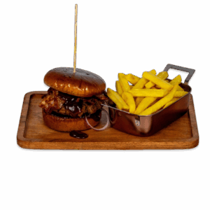 Saftiges Patty mit rauchiger BBQ-Sauce, knusprigem Bacon, frischem Salat, Tomate und ...