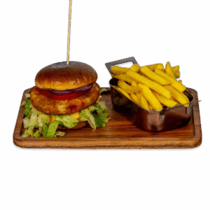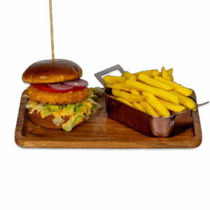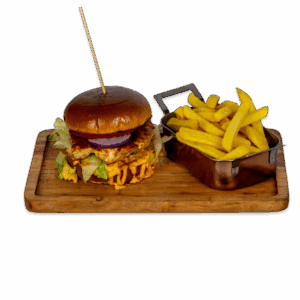 Feurig-würziger Burger mit Cheddar, Jalapeños, Burgersauce, Salat, Tomate und Zwiebeln ᵃ ᵈ ...